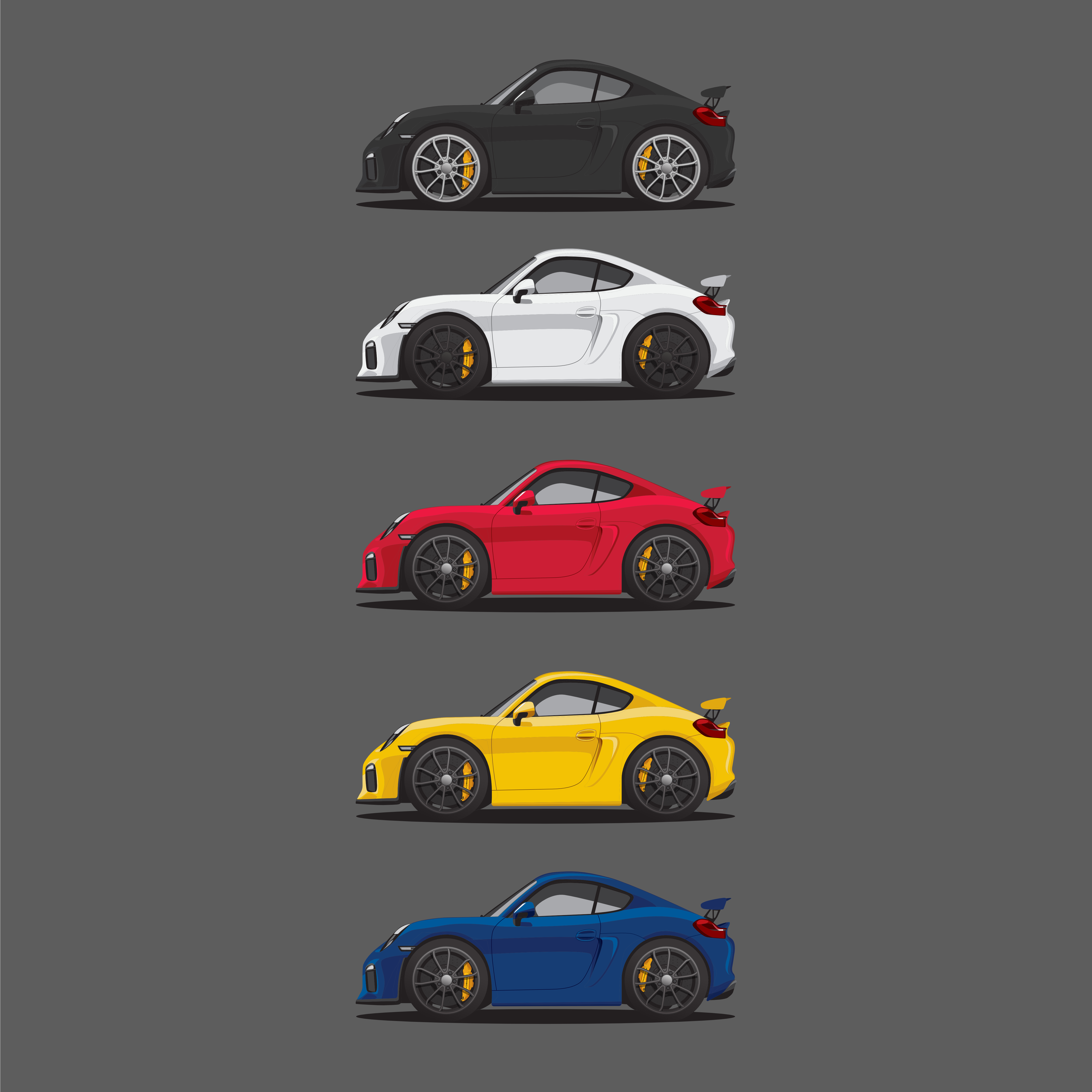 Vector artwork based on a car that I had owned, a 2016 Porsche Cayman GT4 (981) in white along with a few other colors. Year 2016 Tools Affinity Designer Client Personal
