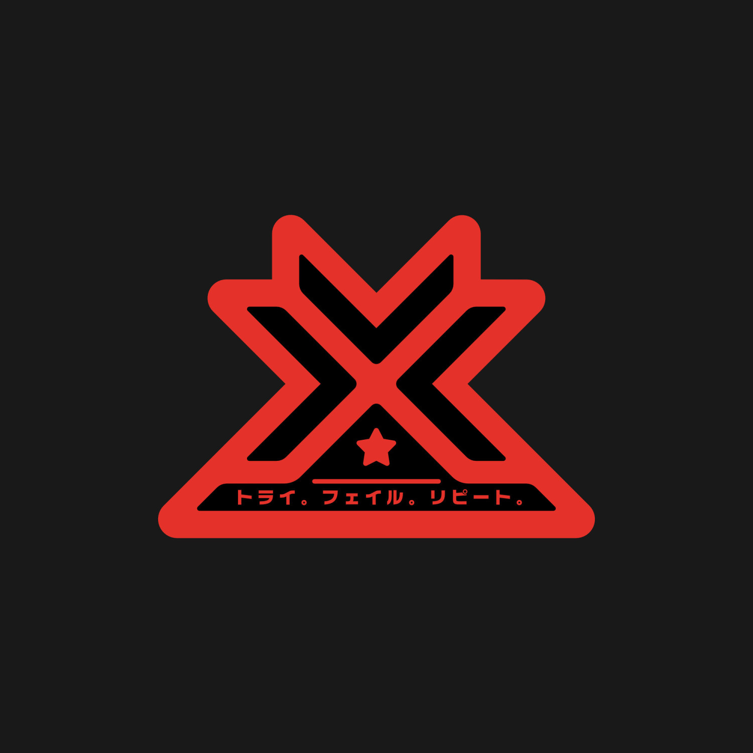 Print design for the MJ brand. “Try. Fail. Repeat.” written in katakana. Symbolizes perseverance. Embrace failure as part of learning and growing.