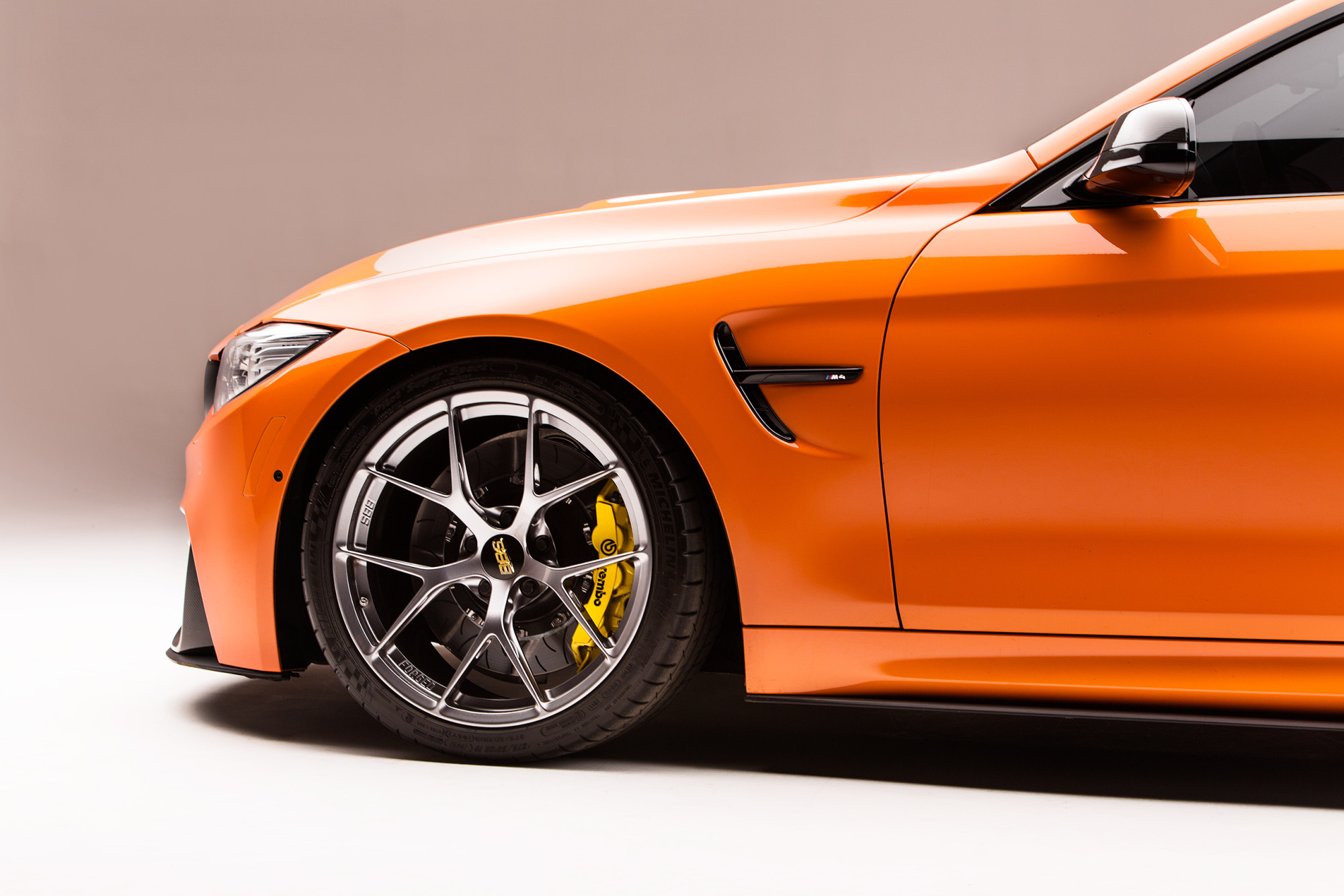 Studio photoshoot of a Fire Orange F80 M3.
